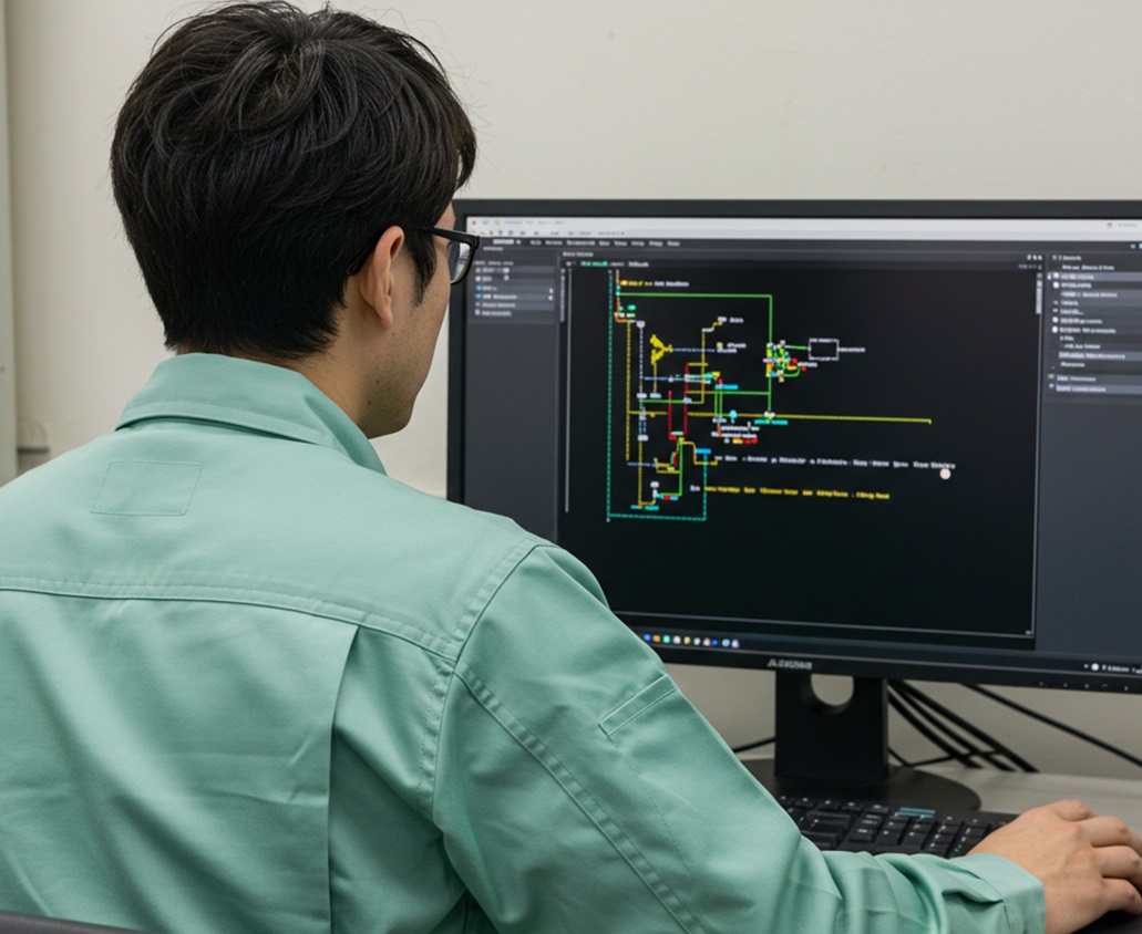 私たちは、産業機器や設備の制御設計を通じて、現場の「安全・効率・安定」を支える技術パートナーです。長年にわたり培ってきた電気制御の知見と、現場ニーズに即した柔軟な対応力を強みに、設計から導入・保守まで一貫したサポートを提供しています。